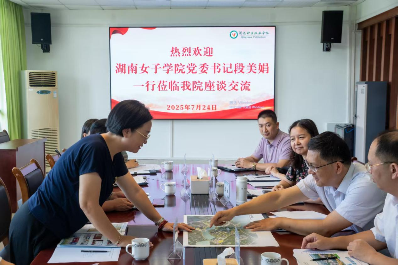 本网讯(社会发展学院 顾怡文)7 月 24 日上午,湖南女子学院党委书记段美娟率社会发展学院书记、院长等一行6人前往清远职业技术学院,就深化全国现代社区智慧家政产教融合共同体建设开展座谈交流。清远职业技术学院党委书记李斌,党委委员、纪委书记莫峰,以及旅游家政与艺术学院班子成员和相关老师出席本次座谈流活动。
