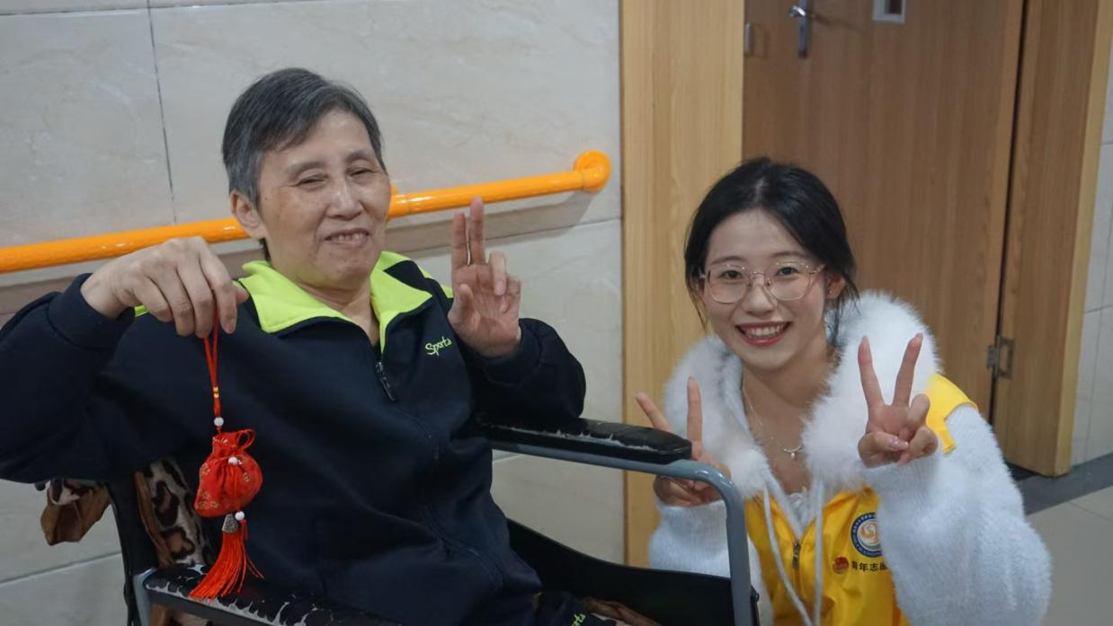 活动期间,党支部成员们主动与老人亲切交谈,关心他们的身体与生活,聆听他们的故事。一位老奶奶动情地说:“看到年轻人这么有爱心,这么用心,我们心里特别暖。”这不仅是一次志愿服务,更是一堂生动的“流动党课”,让青年学子在服务中锤炼党性,在倾听中感悟初心。最后大家合影留念,老人们脸上洋溢的笑容,成为活动最温暖的注脚。