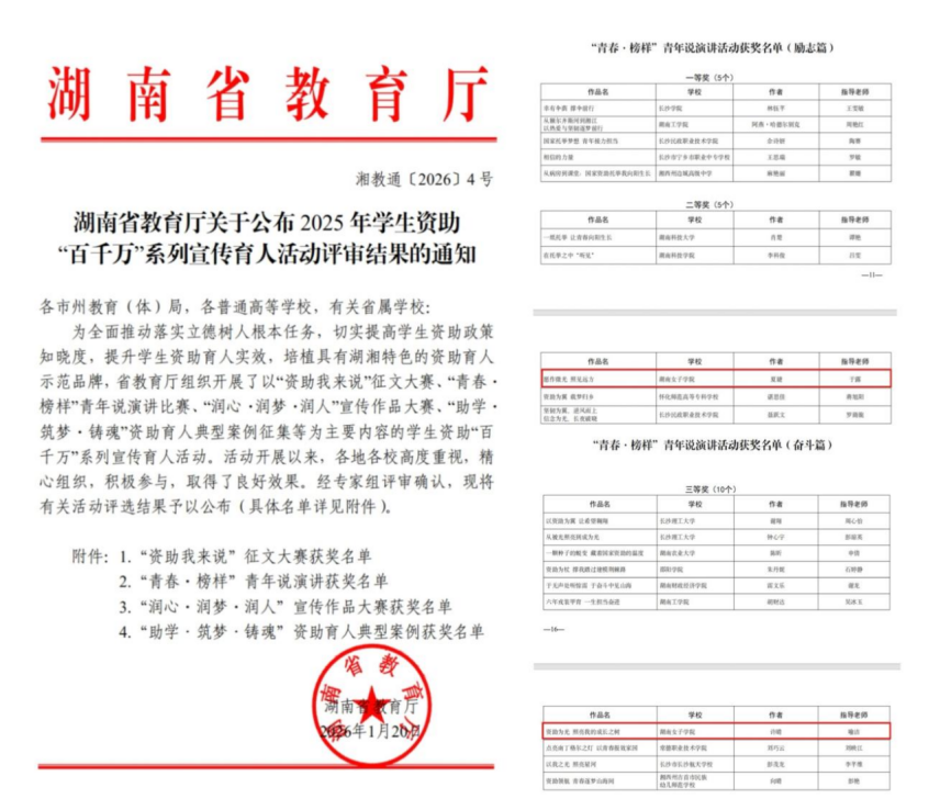 喜报:我校学子在湖南省学生资助“青春·榜样”演讲决赛中斩获佳绩